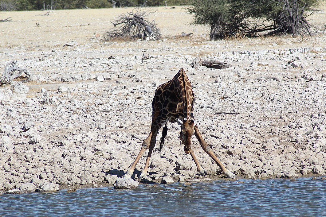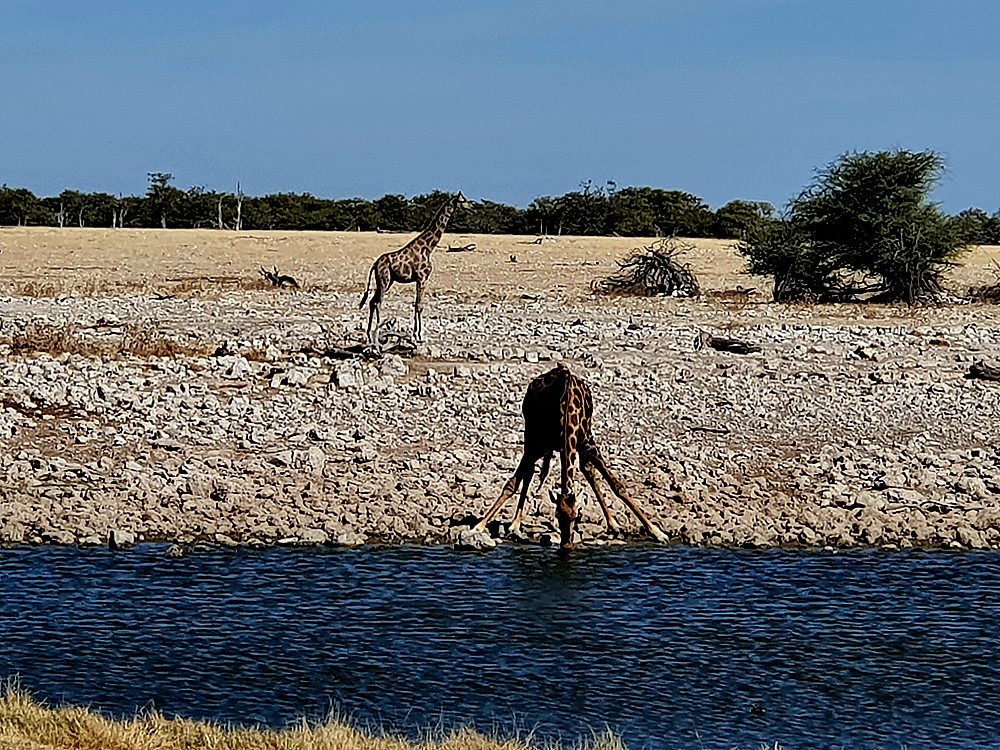To visit Etosha, you must book well in advance, especially during the high season July – August. June turned out to be a great month. It is not particularly crowded then, and the drought has set in so the animals move to the water holes. The park is large, about 380 km along the east-west, and 90 km across, and there are a number of water holes scattered throughout the park. Most natural and some man-made. In the park there are 4 camps where you can park your car. All are equipped with barbecues and electricity, and a number of toilets and kitchens are scattered in the area. Everything is clean and well maintained. Tourism is a large industry in Namibia and they are extremely concerned that tourists should have a good experience of the country. On the whole, all the people in Namibia are very polite and helpful. It is common to greet with a “How are you”. There was some begging in Windhoek, but they were not approachable and took a no for a no.