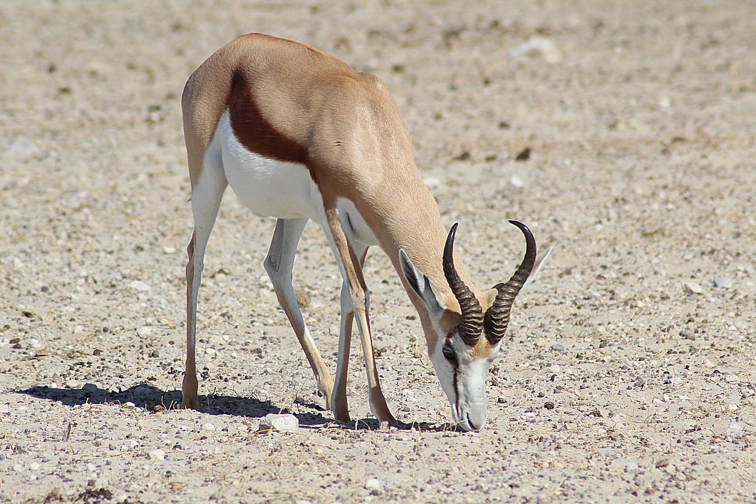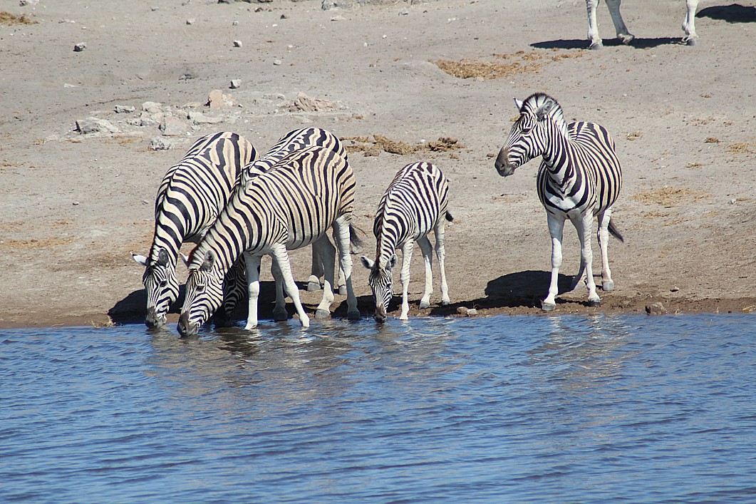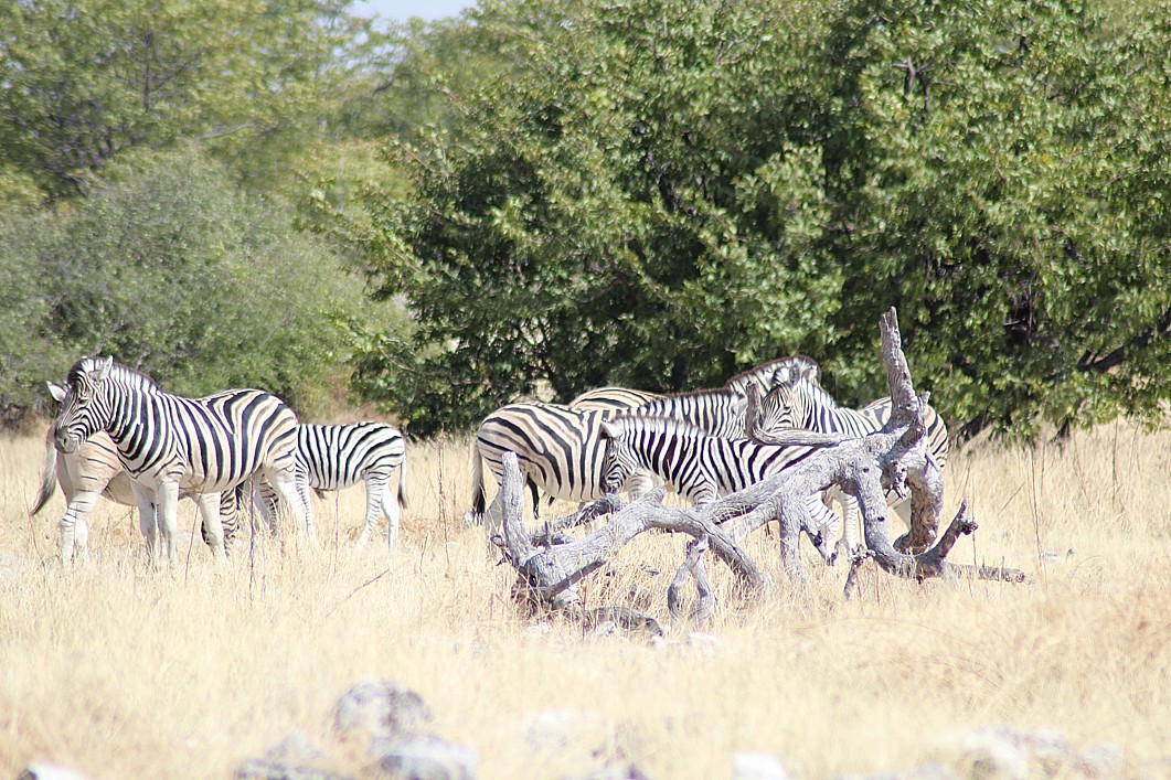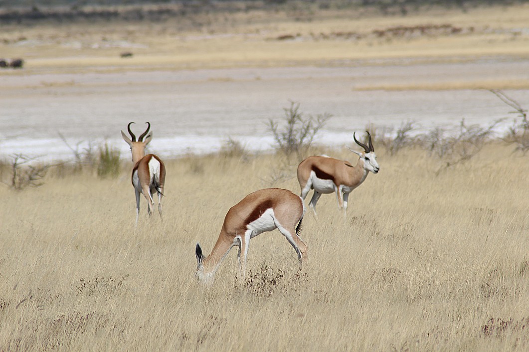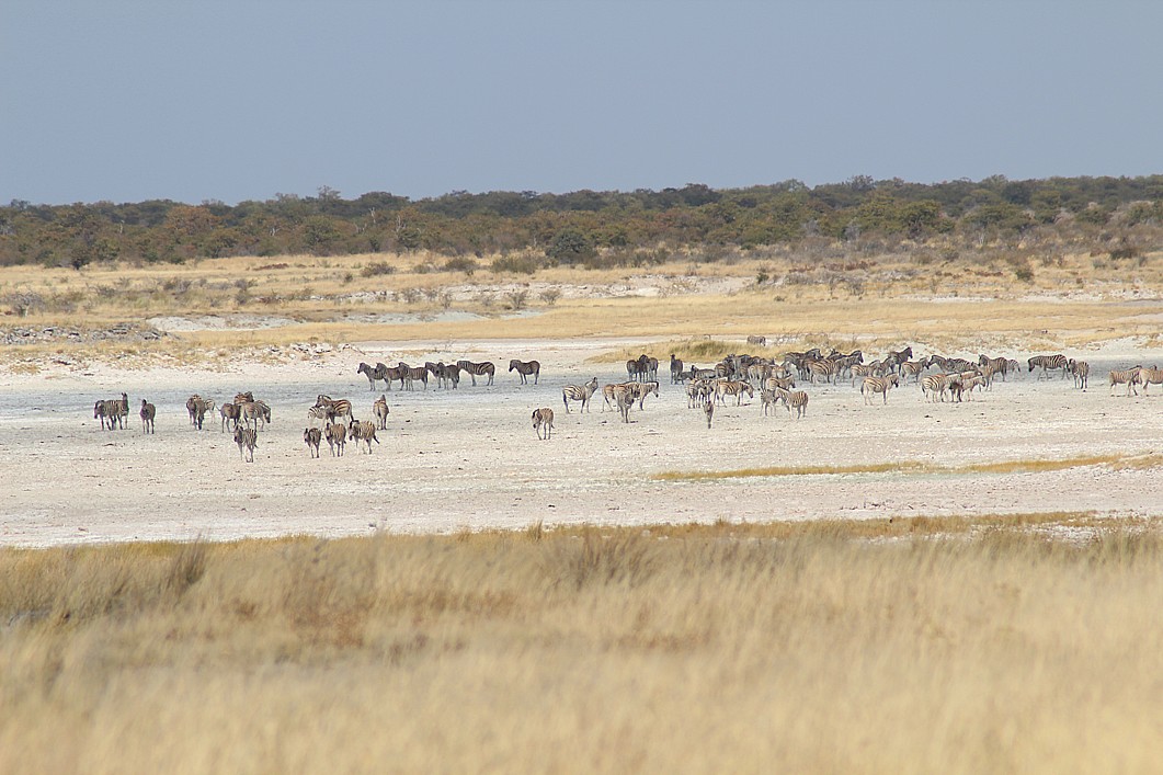 Between the various camps we take it easy and stop by water holes along the road. Between the first three camps it is about 70 km, while the last, Olifantrus is located 127 km from Okaukuejo. The roads are mostly good gravel roads. The landscape is completely flat where open areas changes between forests with small trees. To the north is the large Etosha Pan, a dried-up sea that is only filled with water during the rainy season. Everywhere you come across animals. Mostly antelopes and zebras.