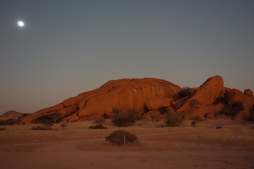 At night it was full moon and with no artificial lighting that disturbed, the moonlight created a fantastic light-shadow effect that enhanced the organic shape of the mountains. Grosse Spitzkoppe, who from this side is not particularly sharp, rose a couple of kilometers away, bathed in moonlight. It was almost as expected that van Gogh would come strolling with the easel under his arm, ready for an African “Starry Night”.